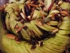 黄瓜又名胡瓜,为张骞出使西域得以引种,故名。本品生熟均能食用。黄瓜含葡萄糖、半乳糖、精氨酸、核黄素和维生素C等。黄瓜头苦味部为葫芦素A、B、C、D。葫芦素C有抗肿瘤作用,且黄瓜藤有良好的降压和降胆固醇的作用。