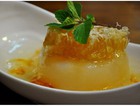 桃胶,为蔷薇科植物桃或山桃等树皮中分泌出来的树脂。植物形态详"桃仁"条。 夏季采收,用刀切割树皮,待树脂溢出后收集。水浸,洗去杂质,晒干,和木瓜炖煮制成木瓜桃胶,味道香甜,有轻微苦味。