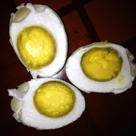 听声音。内行人俗称“铁声”的鸭蛋,没有毛孔,表皮特别光滑,手指轻轻一弹或将两个鸭蛋轻轻碰磕,即发出轻微、尖锐的声响,这种蛋为数甚微,食用倒没问题,如果做松花蛋或腌制咸蛋的话那可不行,缘由是,无毛孔的鸭蛋,腌了一个月照旧是鲜蛋。