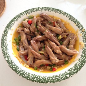 鸭舌是中华美食中不可缺少的食材。我国各地都有很多鸭舌的做法,如:椒盐鸭舌、麻辣鸭舌、银耳鸭舌汤、辣酱炒鸭舌、青椒爆鸭舌、炒全鸭、芙蓉鸭舌、凉拌鸭舌、干妈豆豉舌、烩鸭舌掌、鸭舌草炖猪肘肉、水晶鸭舌、干妈豆豉舌、卤鸭舌、金沙鸭舌、银杏煨雀舌、什景泡坛、青椒鸭舌、炒全鸭、红油鸭舌等,浙江温州更是以做美味酱鸭舌出名,温州人管鸭舌不叫鸭舌叫“鸭赚”,意思是不要小看了形状狭长的鸭舌,小鸭舌却包含了大商机。