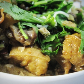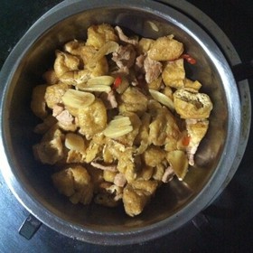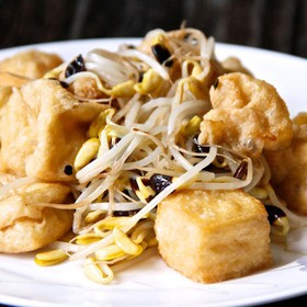 油豆腐是豆腐的炸制食品,主要原料是黄豆,经磨浆、压坯、油炸等多道工序制作而成。其色泽金黄,内如丝肉,细致绵空,富有弹性。既可作蒸、炒、炖之主菜,又可为各种肉食的配料,是荤宴素席兼用的佳品。油豆腐富含优质蛋白、多种氨基酸、不饱和脂肪酸及磷脂等,铁、钙的含量也很高。