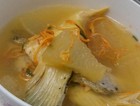 鱼汤的营养十分丰富,食疗功效不可小视,而且不同种类的鱼保健功能也不尽相同,所以常常成为诸多靓汤的主料。举个简单例子,鲤鱼有健脾开胃、利尿消肿、止咳平喘、清热解毒等功能,将它和冬瓜、葱白煮汤服食,可以减轻水肿症状;而若是与少许川贝合煮,便可以起到抗炎作用,治疗咳嗽气喘。