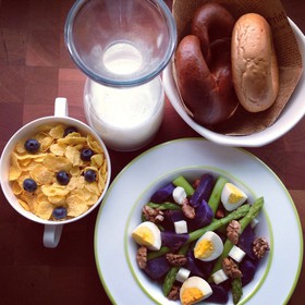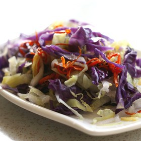 紫甘蓝结球甘蓝中的一个类型,由于它的外叶和叶球都呈紫红色,故名紫甘蓝。紫甘蓝叶片紫红,叶面有蜡粉,叶球近圆形。它营养丰富,尤其含有丰富的维生素C、V和较多的维生素E和B族。在炒煮时,颜色成为黑紫色,十分美观;在欧洲地区主要作为色拉菜或西餐配色用,可用于生食、汤食、炒食。
