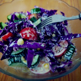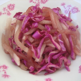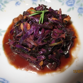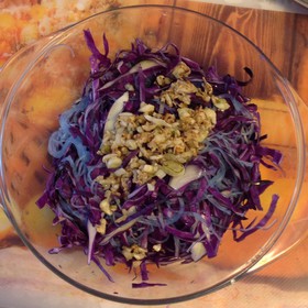 紫甘蓝结球甘蓝中的一个类型,由于它的外叶和叶球都呈紫红色,故名紫甘蓝。紫甘蓝叶片紫红,叶面有蜡粉,叶球近圆形。它营养丰富,尤其含有丰富的维生素C、V和较多的维生素E和B族。在炒煮时,颜色成为黑紫色,十分美观;在欧洲地区主要作为色拉菜或西餐配色用,可用于生食、汤食、炒食。